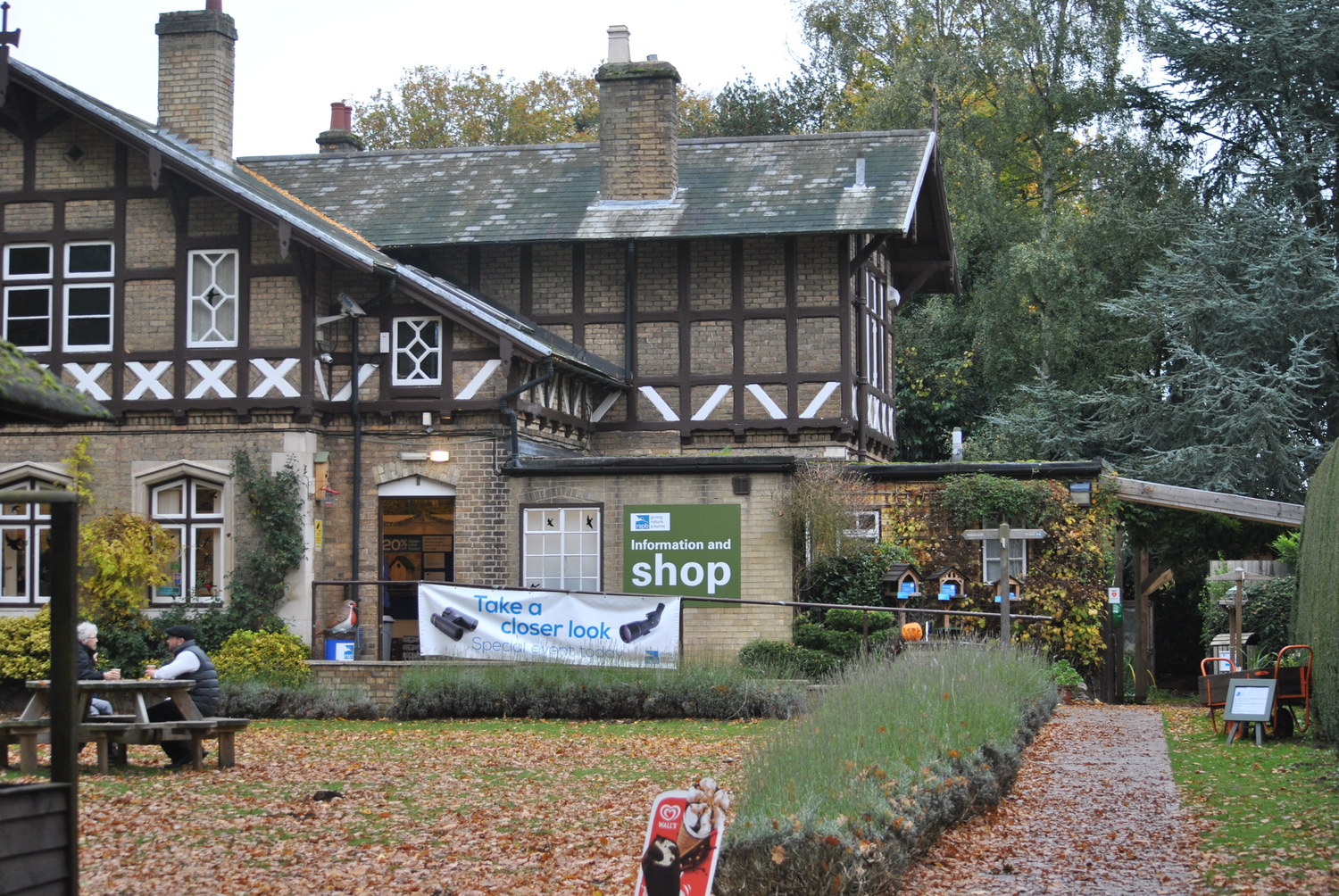 The shop has an excellent range of binoculars and telescopes, books, bird food and gifts. Guided walks can also be booked here. There is a picnic area, and snacks are available at the shop. The hide, gardens and toilets are wheelchair accessible.
