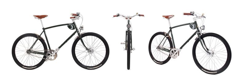 The Pashley-Morgan 3 is finished in British Racing Green and livery inspired by Morgan's racing heritage. It also features hand stitched honey leather grips and Morgan aluminium end caps, a Brooks B17 saddle with walnut laminated wood veneer short mudguards and matching chain guard. The Pashley-Morgan 3 features a Sturmey Archer 3 Speed internal geared hub and a Sturmey Archer dynamo front hub paired to a classic domed style headlamp.