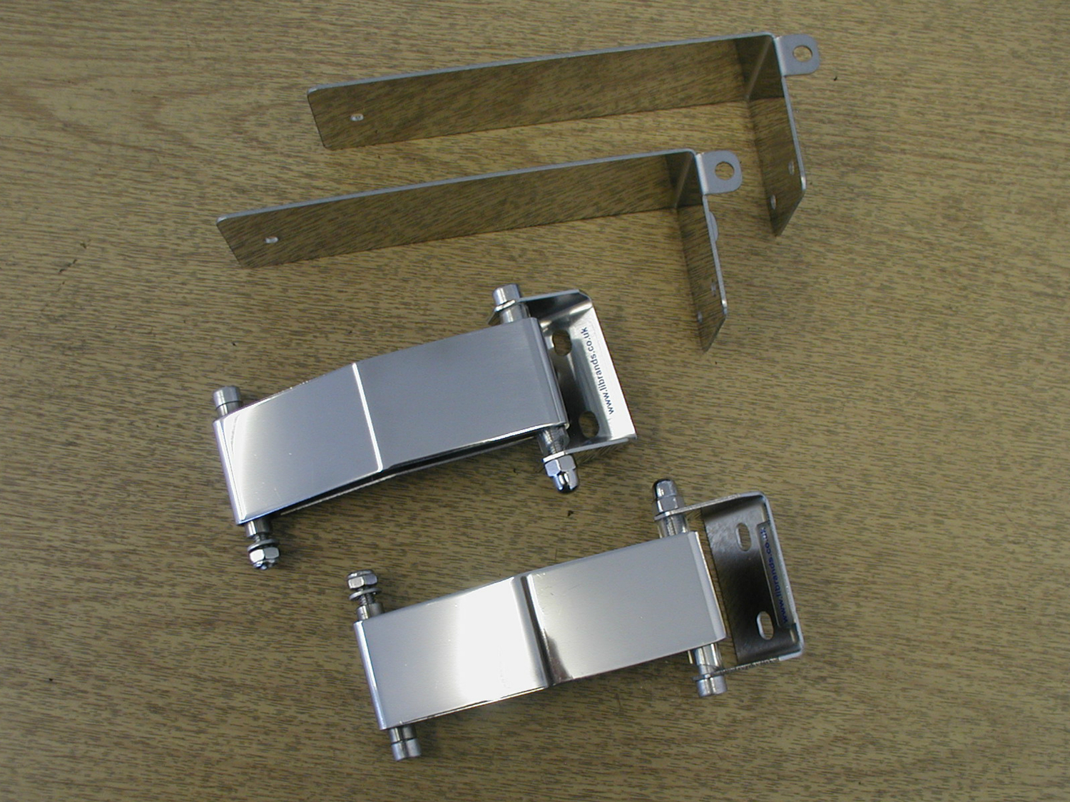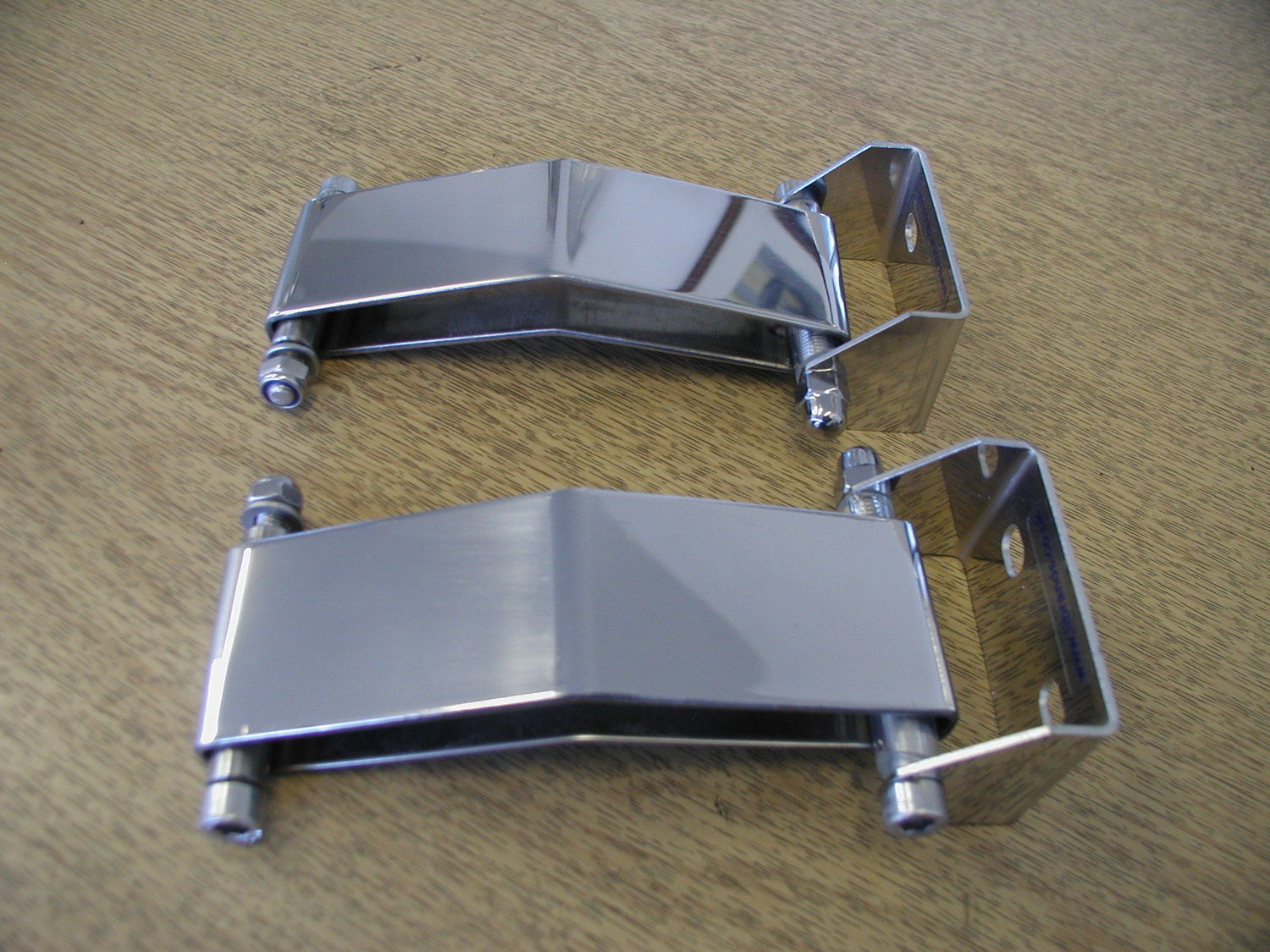 These polished stainless steel door check straps are easy to install. They replace the leather straps to prevent the door from opening too wide and also hold it open automatically. They come with 2 right angle brackets to fit to the door post and full fitting instructions.