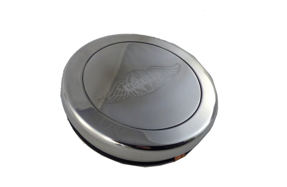 Stainless Horn Push, engraved with the Morgan "Old Wings" Logo.